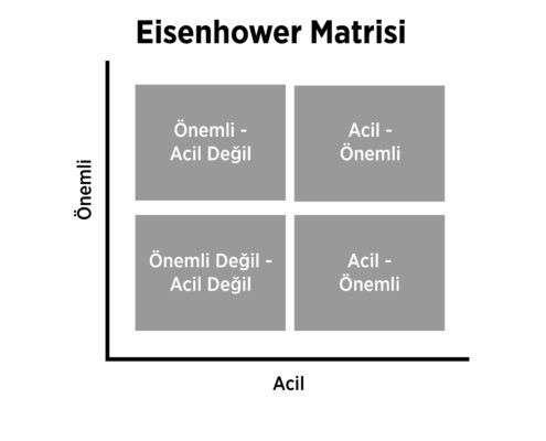Bu matris ile işlerinizi önem ve aciliyete göre 4 farklı bölümde sıralayabilirsiniz. İşe görevlerinizi listeleyerek başlamalısınız. Daha sonra önem sırasına göre ne yapacağınıza karar vermelisiniz. Örneğin; önemli olmayan ve acil olan işlerinizi bir başkasına devredebilirsiniz yada acil ve önemli olmayan işlerinizi erteleyebilirsiniz.