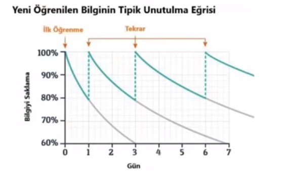 Son yöntem ise aralıklı öğrenme bunun için yine 3 grup oluşturuluyor. Ve bunlara İspanyolca dersi veriliyor. İlk grup 6 oturumluk dersi toplam 1 gün içerisinde alıyor.İkinci grup 6 oturumluk dersi her gün 1 er tane olmak üzere toplam 6 günde veriliyor. Üçüncü grup 6 oturumluk dersi 1 ay aralıkla toplam 6 ay da alıyor. Ve her gruba kendi dersleri verildikten sonra bir sınav yapılıyor. 1 gün ve 6 günde bitiren grup yüksek ve aynı skoru alıyor.6 ayda bitiren grup ise düşük skor alıyor çünkü çoğu bilgiyi unutmuş oluyorlar. Ama bu sefer her grup 6. oturumu bittikten 30 gün sonra bir sınava tabi tutuluyor ve 30 gün aralıkla toplam 6 ayda öğrenenler 30 gün sonra daha başarılı oluyor. Uzun aralıkla öğrendiğimiz bir şeyin uzun süreli hafızamızda, kısa aralıkla kısa öğrendiğimiz bir şeyinde kısa süreli hafızamızda yer ettiğini öğrenebiliriz. Yani düzenli ve tekrar ederek çalışırsanız sene başında çalıştığınız konuları sene sonunda ki sınavlarda daha etkili bir şekilde hatırlayabilirsiniz.