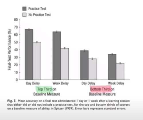 Test çözmenin öğrenme üzerine iki etkisi var. Direkt (doğrudan) etki diğeri dolaylı yoldan etki. Direkt etki dediğimiz test sorusu üzerinden bilgi öğrenmek, dolaylı öğrenme ise bir test de bir soruyu çözerken aslında o konunun farklı yönlerinin de olacağını görerek öğrenmedir. Yine bir araştırmaya göre toplam iki grup var. Bir sınıfın en başarılı diliminin 1/3 ü ve en başarısız diliminin 1/3'lük dilimi kullanılıyor.Bu iki grubun yarısına konuları dinledikten hemen sonra test çözdürülüyor diğer yarısına çözdürülmüyor. Ve testlerden bir gün sonra sınav yapıldığında test çözenler başarılı olurken test çözdürülmeyen kısım daha az başarı gösteriyor.